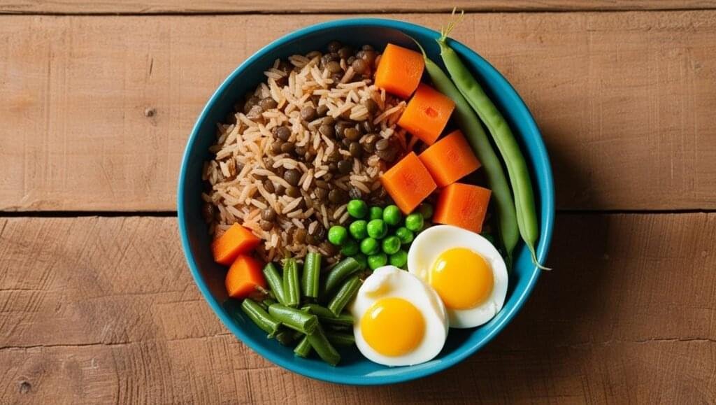 Nutritional Benefits: This meal provides lean protein from chicken, complex carbohydrates from brown rice, and various vitamins and minerals from the vegetables. The olive oil adds healthy fats for skin and coat health.